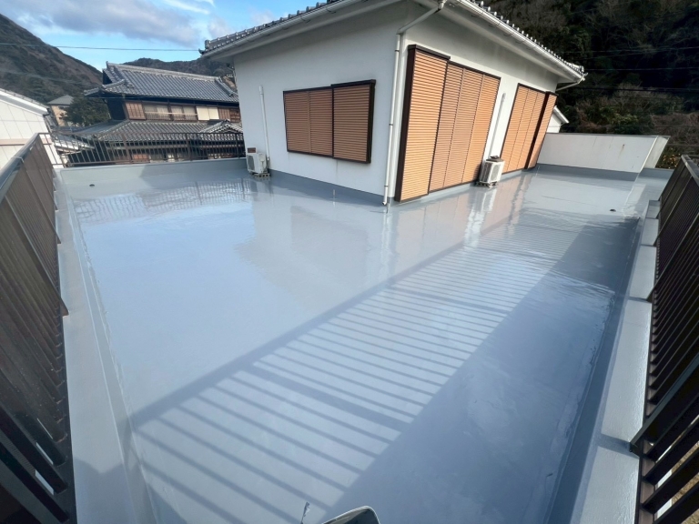 施工完了後の屋上は、均一で美しい防水層に仕上がりました。