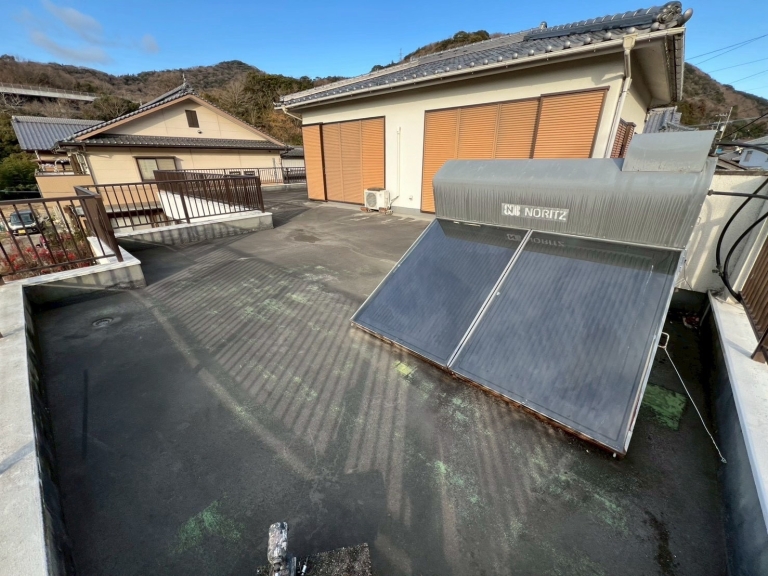 既存のソーラー温水器や架台、ブロックの撤去から、ウレタンメッシュ工法による屋上防水までを一貫して施工しました。